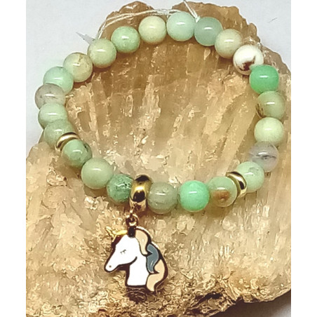 Bracelet enfant chrysoprase, 6 mm , séparateur en acier inoxydable doré