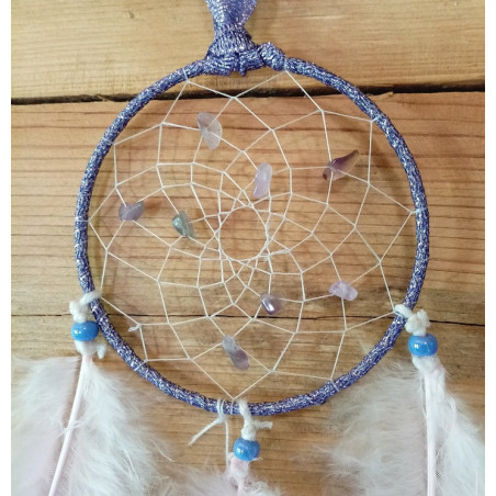 Mini attrape rêves, porte bonheur de voiture avec pépites d'améthyste, diamètre 7 cm