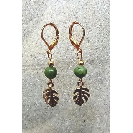 Boucles d'oreilles bienêtre jade feuille doré