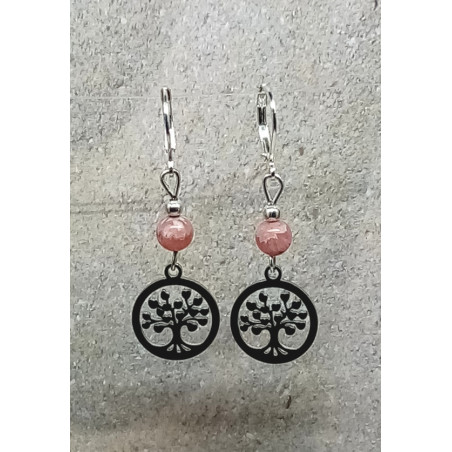 Boucles d'oreilles bienêtre rhodochrosite arbre de vie acier
