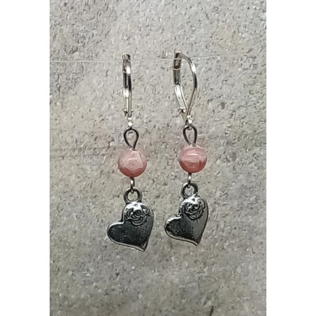 Boucles d'oreilles rhodochrosite cœur et dormeuse acier inoxydable
