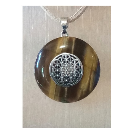 Pendentif bienêtre pi œil du tigre fleur de vie