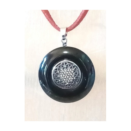 Pendentif bienêtre pi onyx cordon suédine bordeaux