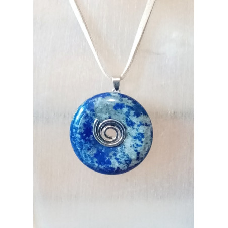 Pendentif pi bienêtre lapis lazuli spirale cordon suédine beige