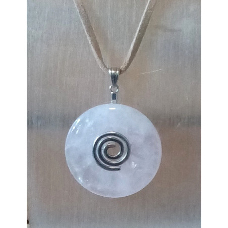 Pendentif bienêtre pi quartz rose spirale cordon suédine beige