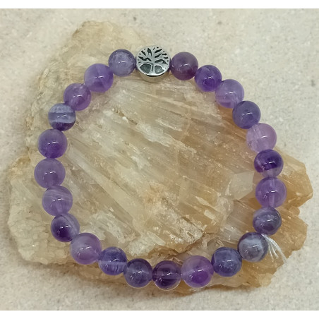 Bracelet améthyste arbre de vie acier inoxydable 8 mm