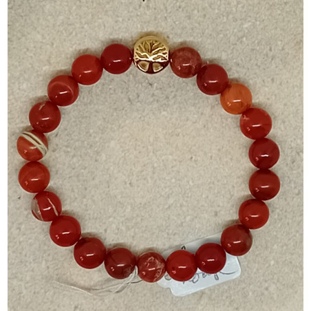 Bracelet jaspe rouge 8 mm arbre de vie doré acier inoxydable