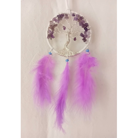 porte bonheur de voiture arbre de vie améthyste blanc violet 7 cm de diamètre