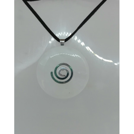 Pendentif pi cristal de roche spirale, avec cordon suédine noire