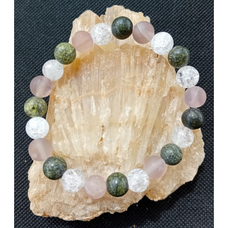 Bracelet bienêtre cristal de roche craquelé serpentine fluorite 8 mm