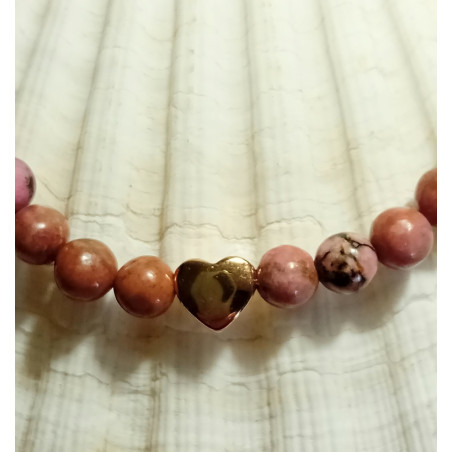 Bracelet bien-être rhodonite 6 mm cœur acier inoxydable rose