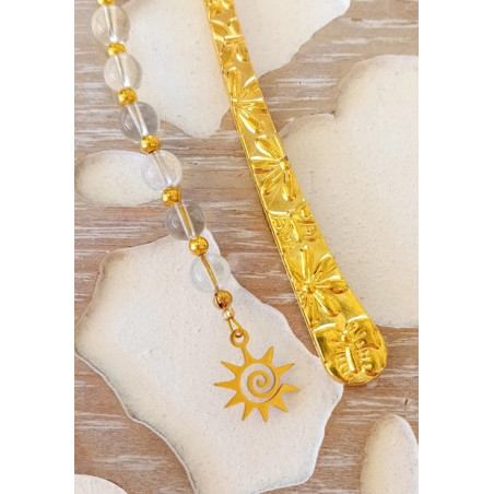 Marque-pages Doré avec pierres naturelles de citrine avec soleil en acier inoxydable doré