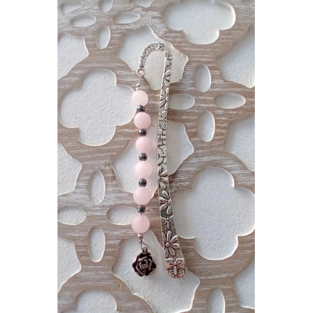 Marque pages quartz rose mâte, hématite et rose en acier inoxydable