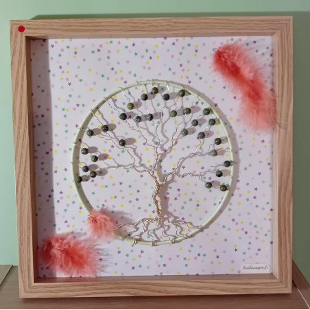 Magnifique Arbre de vie monté sur cadre bois 32x32cm
