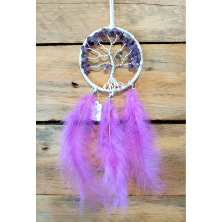 Mini Arbre de vie porte bonheur de voiture améthyste, blanc et rose