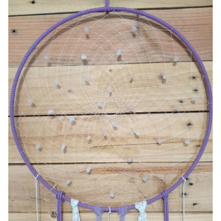 Attrape rêves violet, quartz rose 30cm de diamètre