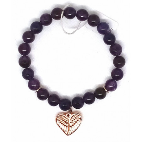 Bracelet pierre semi précieuse améthyste foncé cœur