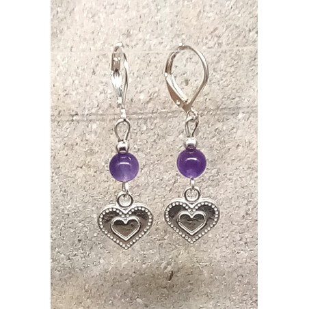 Bijoux bien-être améthyste boucles d'oreilles cœur