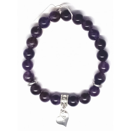 Bracelet améthyste foncé, cœur et intercalaire acier inoxydable