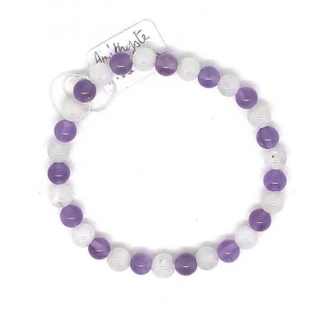 Bracelet améthyste, pierre de lune, perles 6 mm