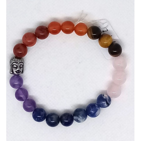 Bracelet 7 chakras bouddha (améthyste, lapis lazuli, sodalite, quartz rose, œil du tigre, cornaline, jaspe rouge)